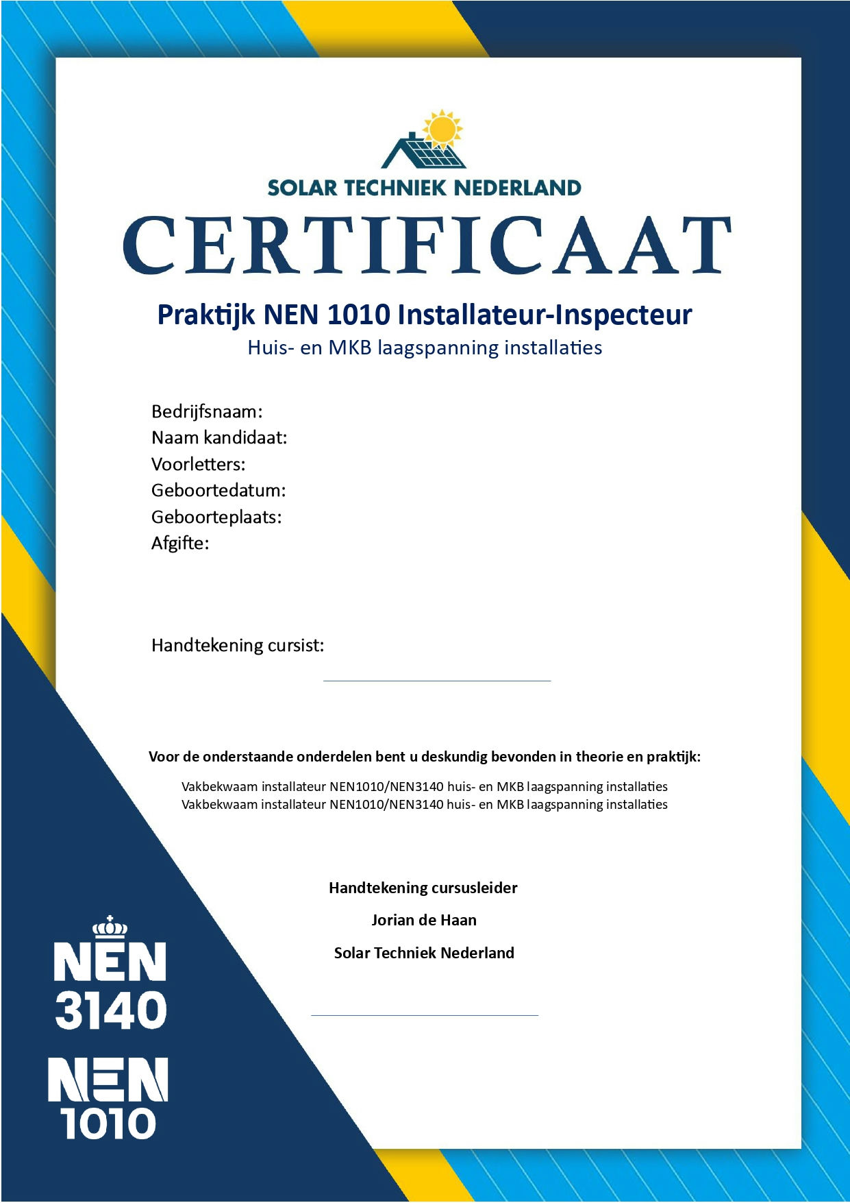 Solar Techniek Nederland is dé praktijkopleider van Nederland. Wij specialiseren ons in het opleiden van de startende en ervaren Installateur-Inspecteur volgens de geldende normen op het gebied van elektrotechnische installaties, brandrisico en de PV-installaties.